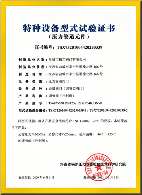 調節閥(控制閥)試驗證書